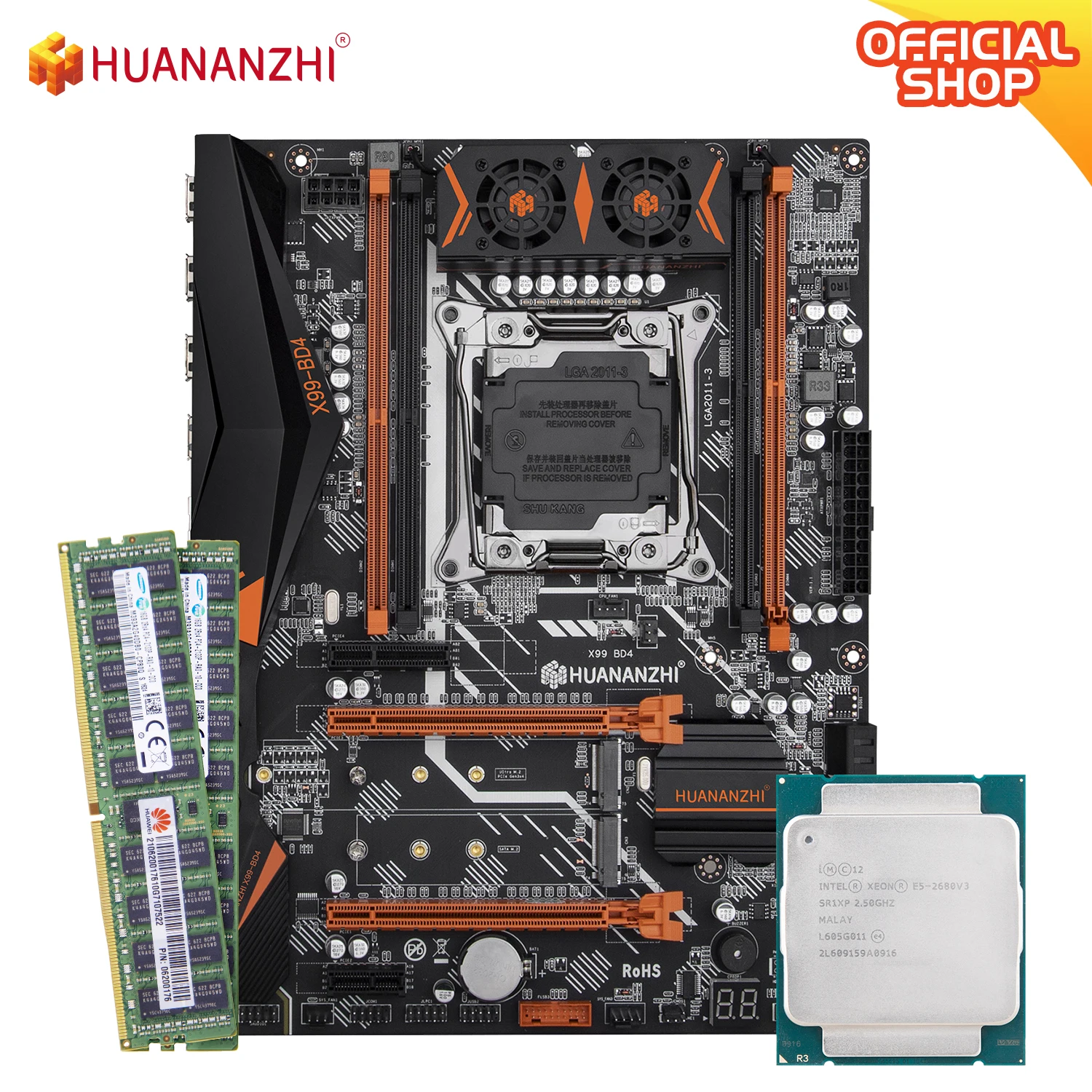 Buy HUANANZHI X99 BD4 X99 Motherboard with Intel XEON E5 2680 v3 with 2*16G DDR4 RECC memory combo kit set NVME NGFF SATA USB 3.0 and You will Save USD 0 or 0% %, Because You Just Pay for 673.51 not Full Price for 673.51
